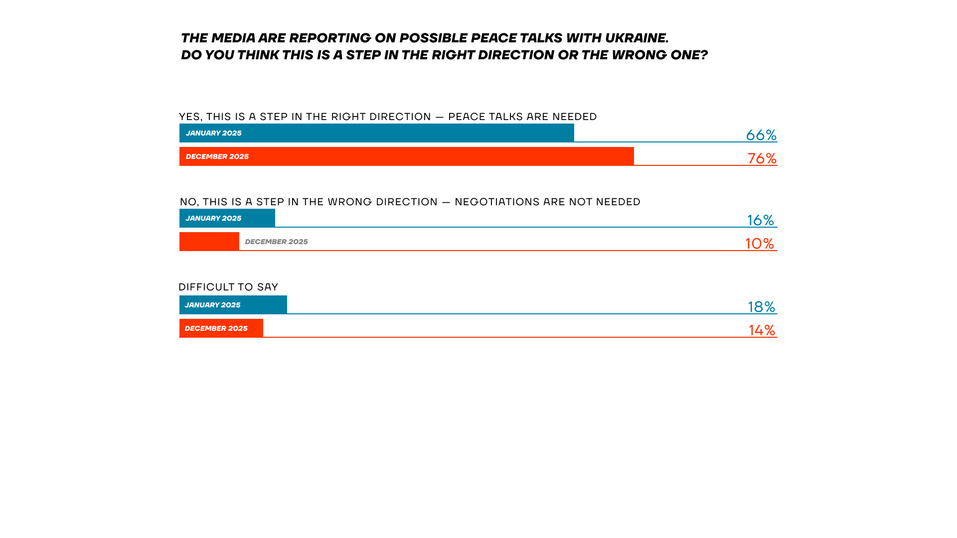While Putin continues to invent new pretexts to prolong the war and derail any genuine steps toward peace, public demand is clear and unequivocal: peace talks are needed, and the war must end.